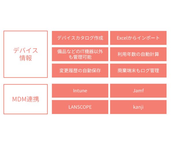 PC用、スマホ用、リース・レンタルなど管理台帳が存在していませんか?運用の複雑化で管理の抜け漏れの温床になりやすいです。Adminaに集約することで、効率的かつ網羅的なデバイス管理を実現しましょう。