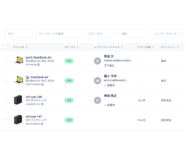Adminaの従業員マスターと連携することで従業員のだれが何のデバイスを使っているかをSaaSと合わせて確認することができます。