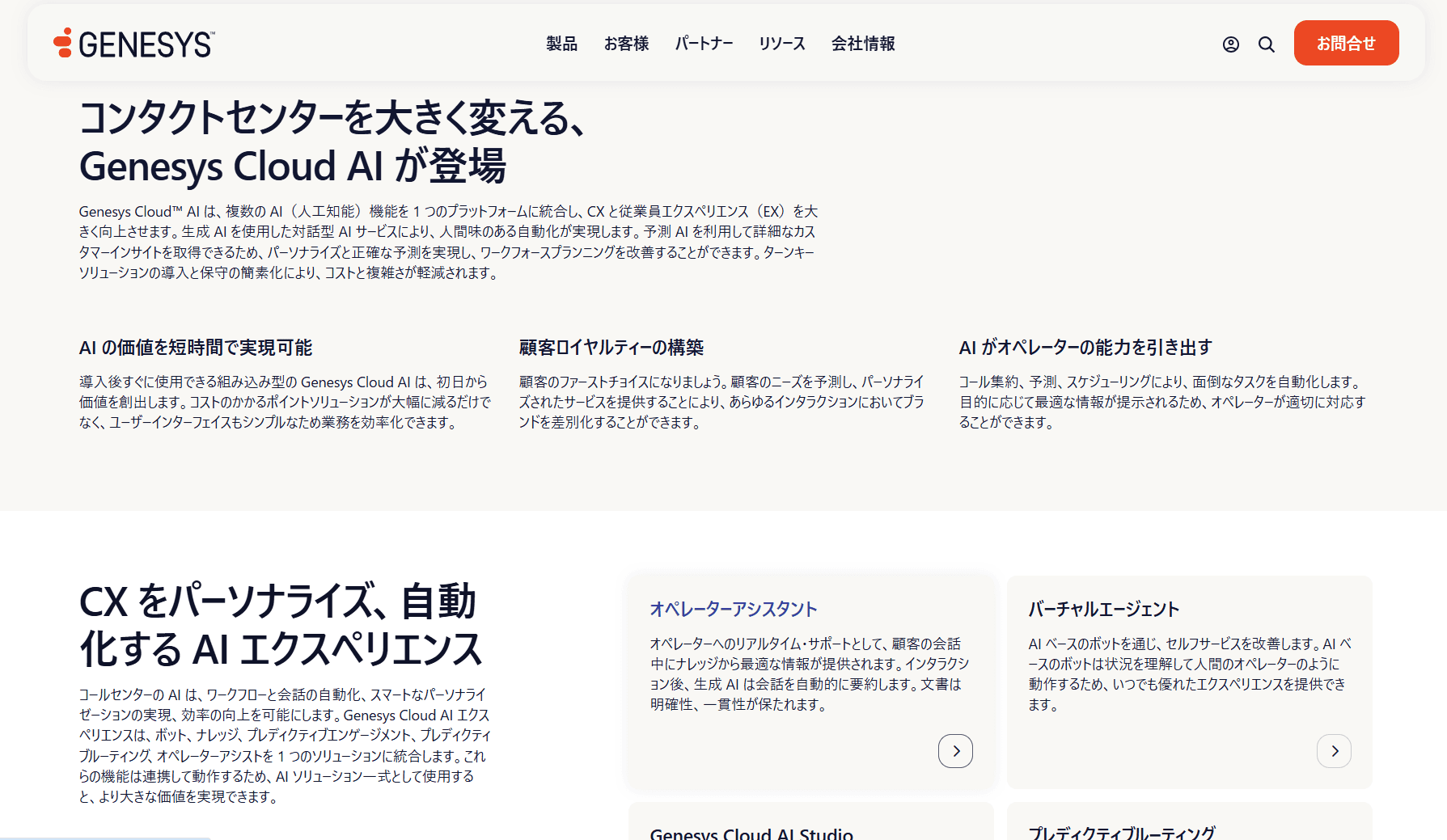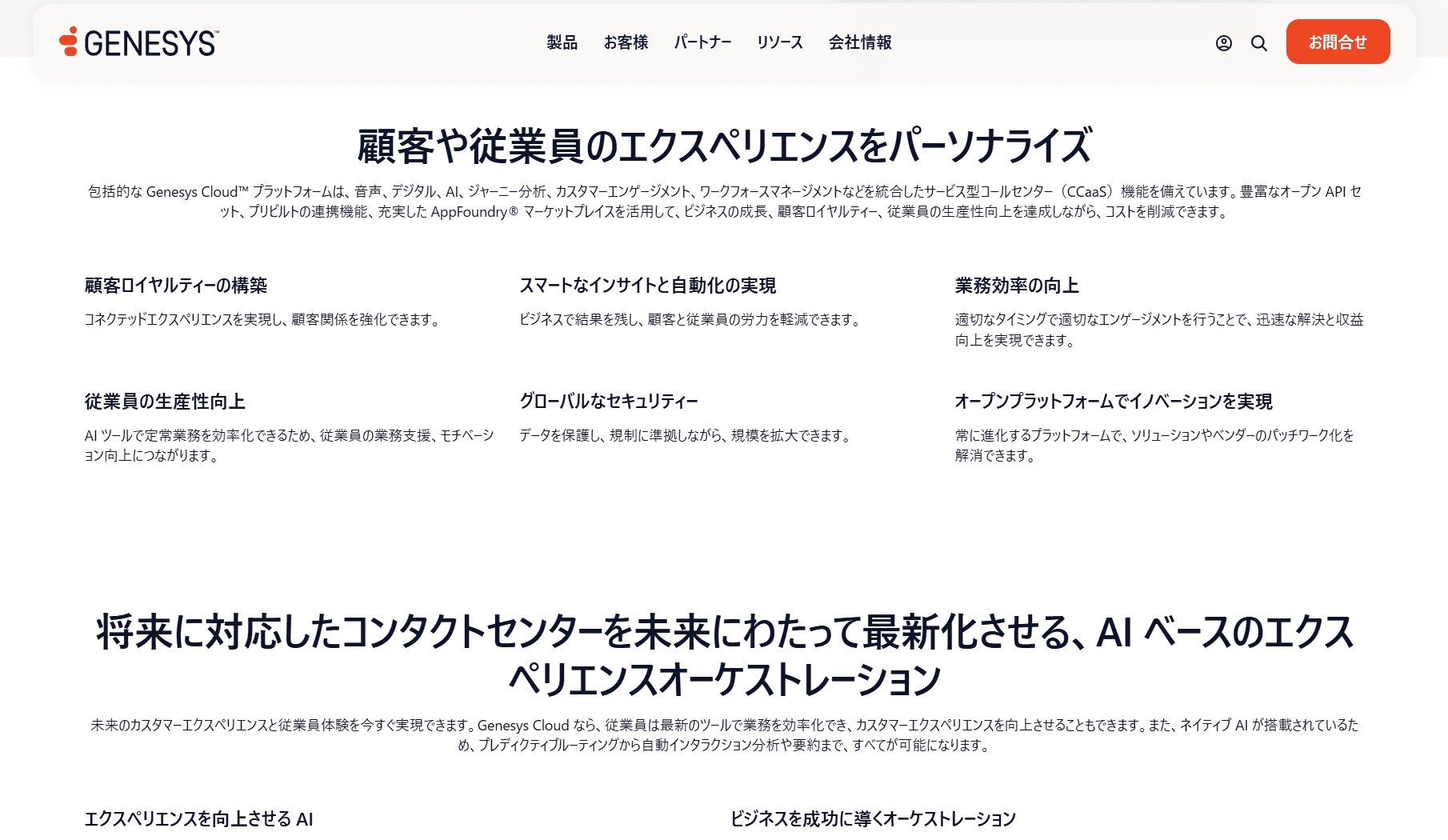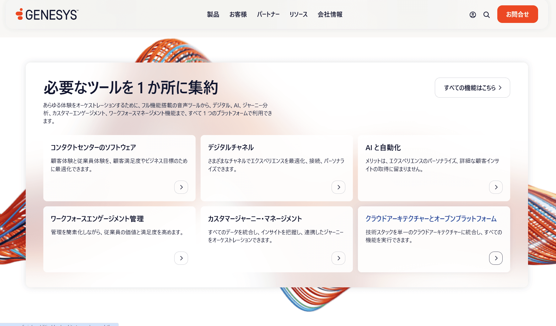 Genesys Cloudは、企業が顧客とのすべての接点を一元的に管理し、優れた顧客体験を実現するためのクラウド型コンタクトセンター統合プラットフォームです。