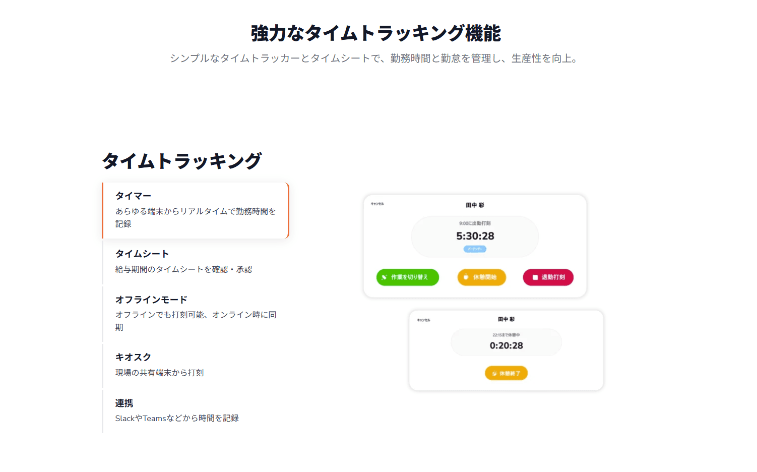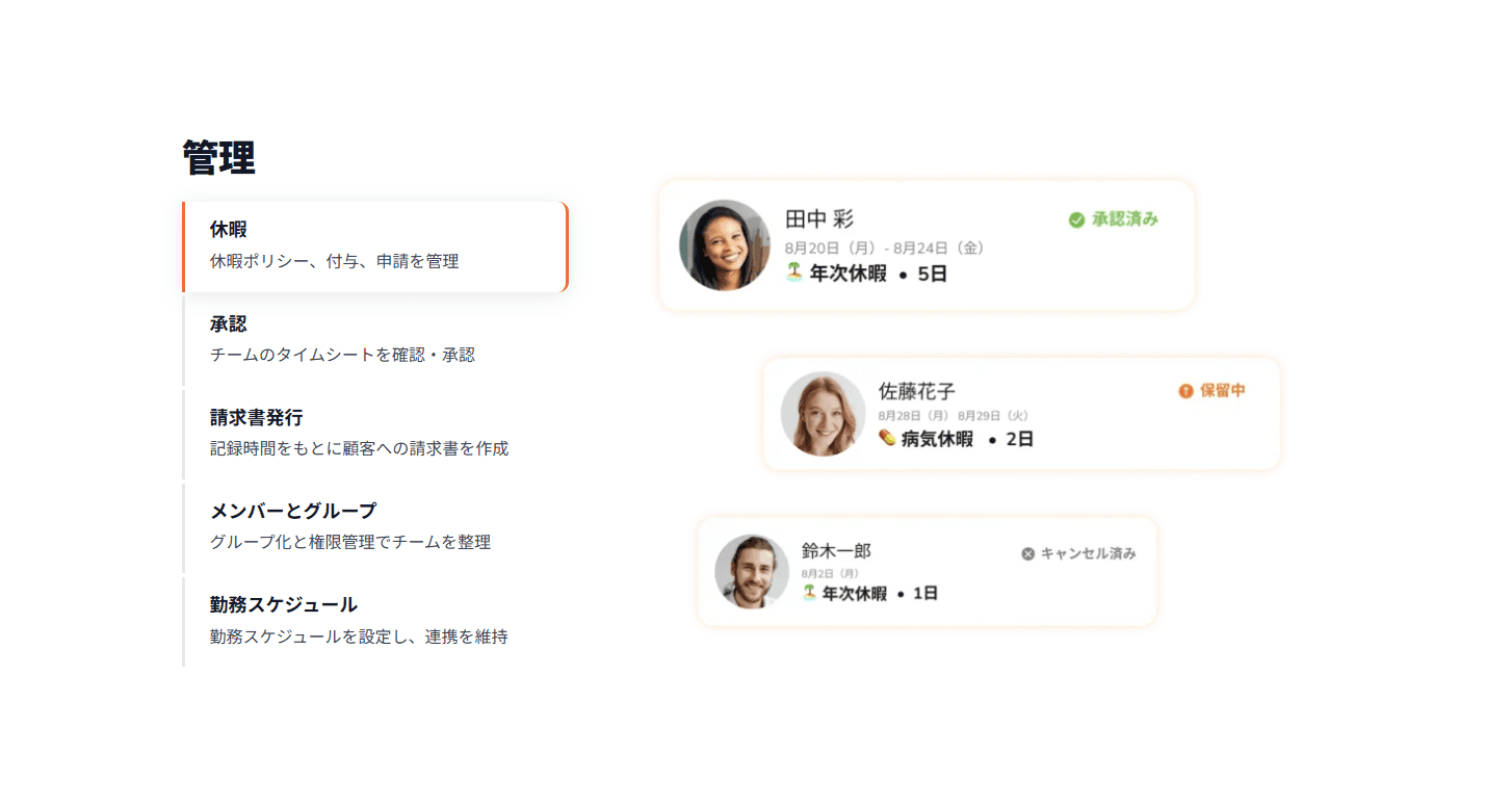 Jibbleは、従業員の勤務時間や作業時間を簡単に記録・管理できるクラウド型のタイムトラッキングおよび勤怠管理ツールです。