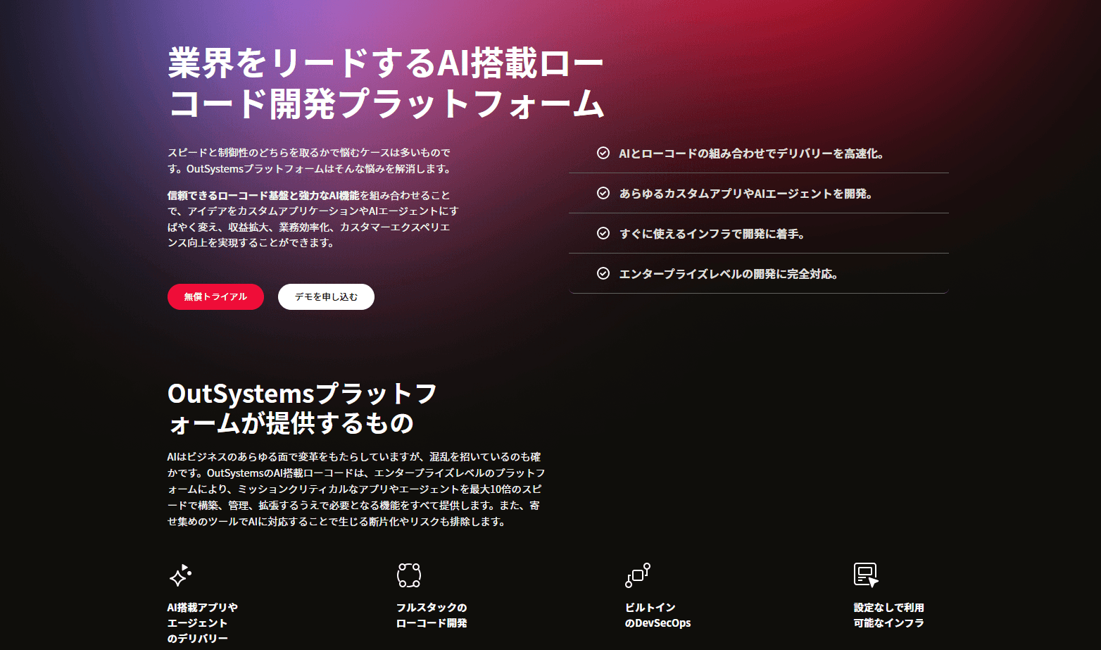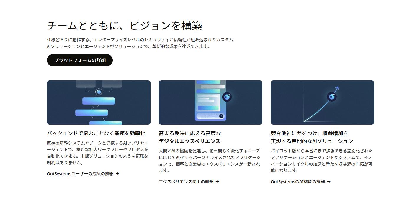 OutSystemsは、エンタープライズ向けのローコード開発プラットフォームです。