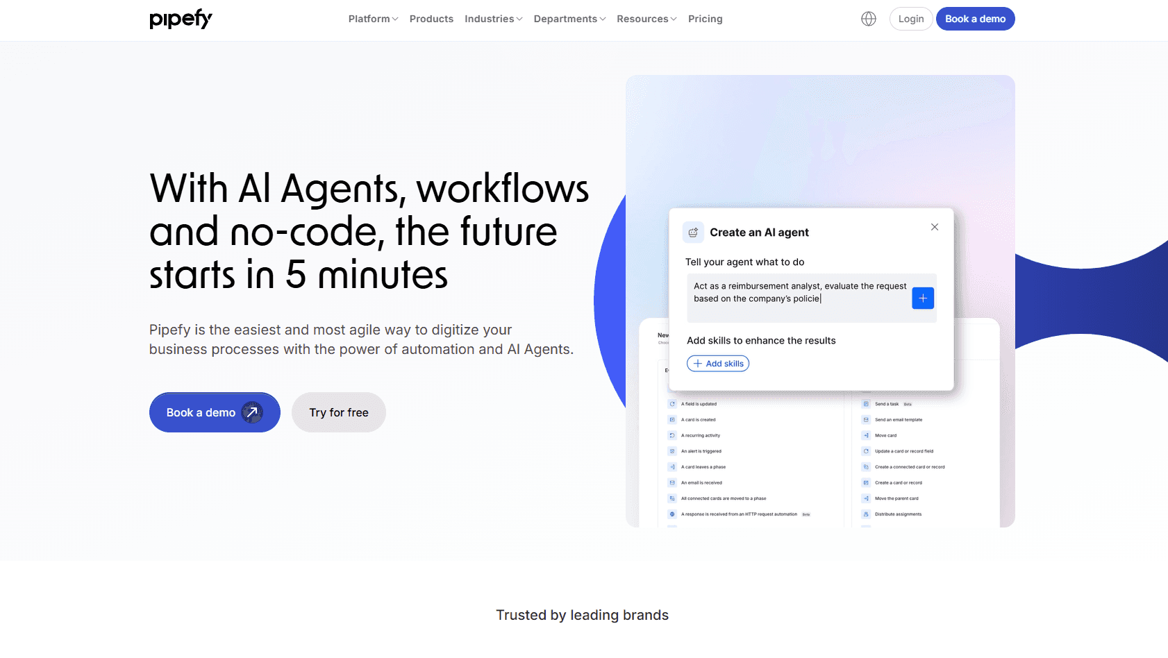 Pipefyは、企業の業務プロセスを効率化・自動化するためのワークフロー管理プラットフォームです。ノーコードで業務フローを設計できるため、エンジニアでなくても簡単に申請・承認・タスク管理などのプロセスを構築できます。AIや自動化機能により、繰り返し作業や手作業を削減し、業務のスピードと正確性を向上させます。