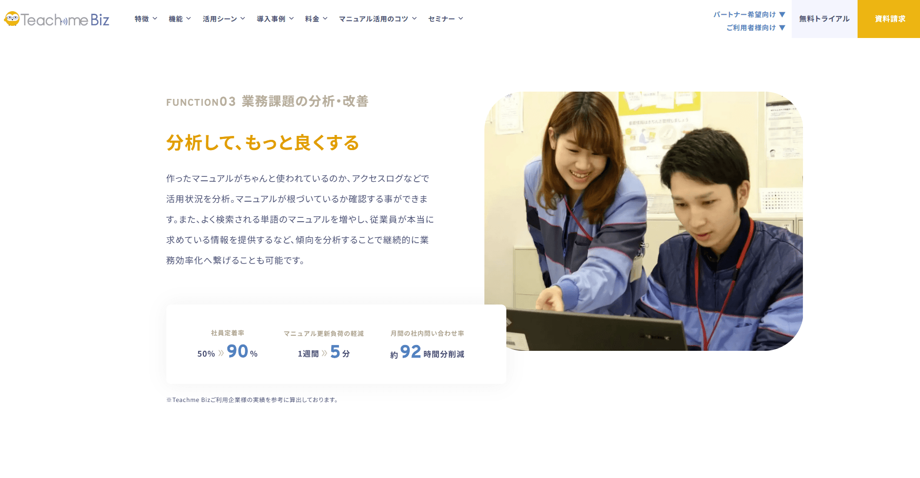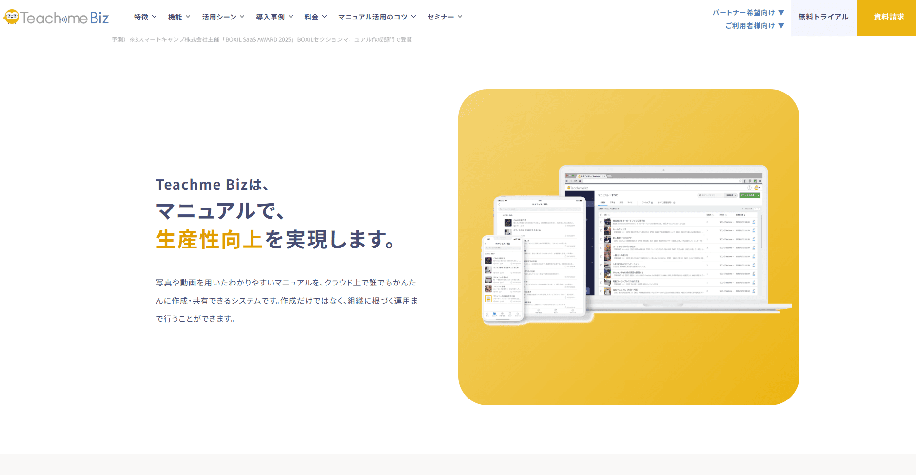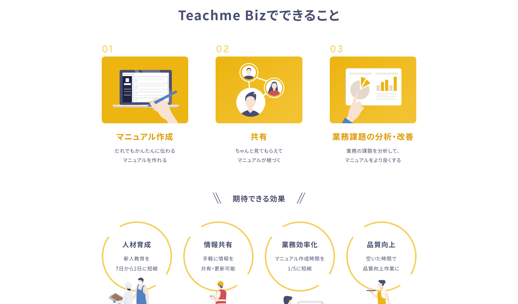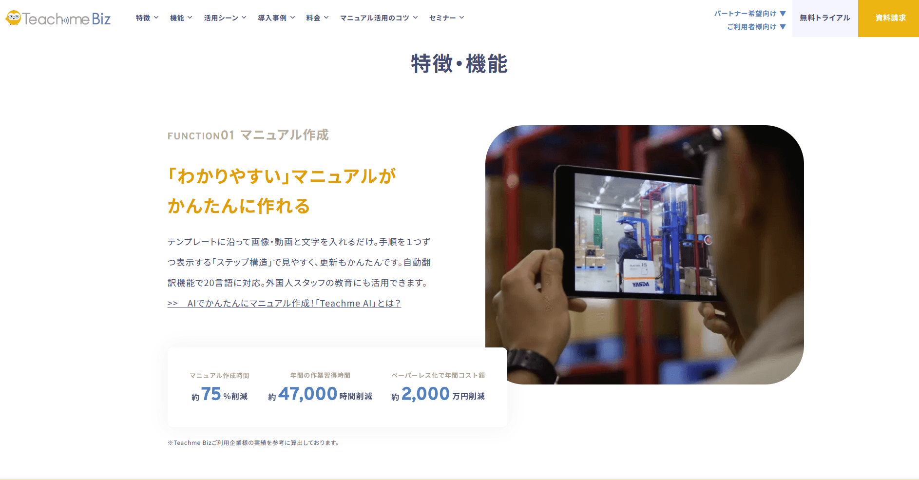 Teachme Bizは、クラウド上で誰でも簡単に業務マニュアルを作成・共有・運用できるシステムです。