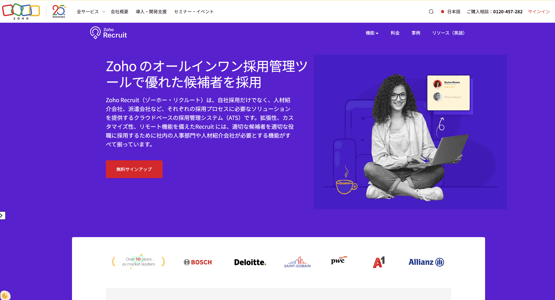 Zoho Recruit は、企業の人事部門や人材紹介会社向けに提供されるクラウドベースの採用管理システムです。