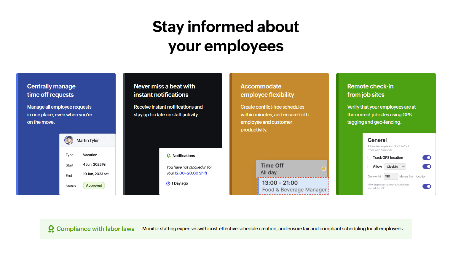 Zoho Shifts は、シフト制で働く従業員のスケジュール管理と勤怠追跡を効率化するクラウドサービスです。