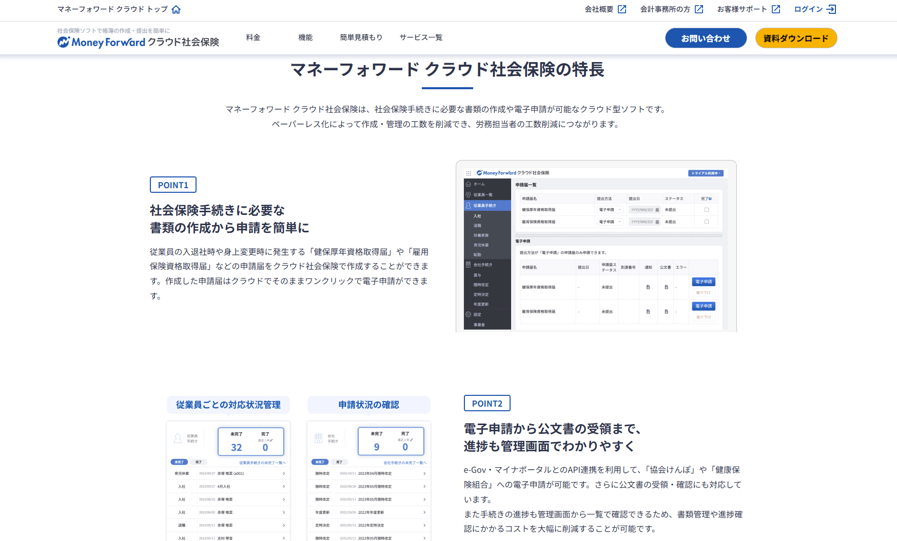 マネーフォワード クラウド社会保険は、社会保険手続きに必要な書類の作成から電子申請までを一元管理できるクラウドサービスです。