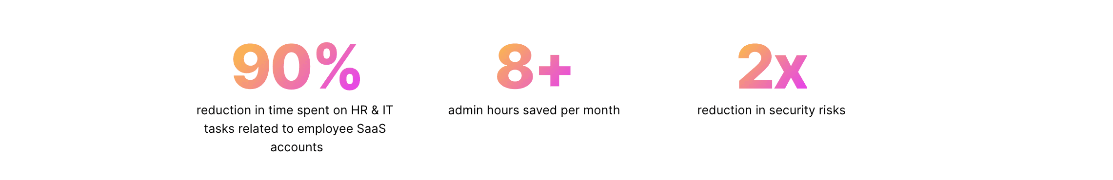 Over 90% reduction in time spent on HR and IT tasks related to employee SaaS accounts.